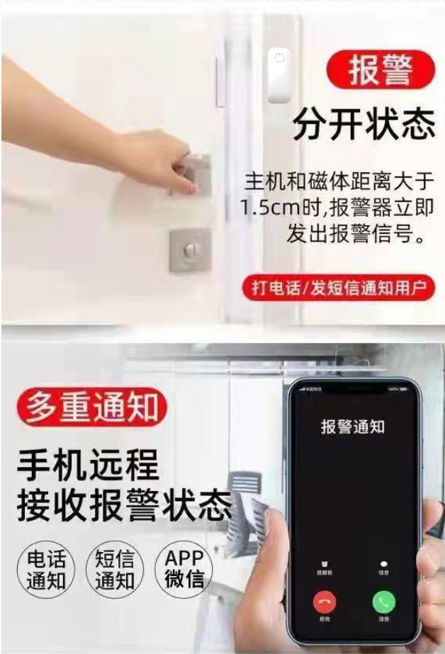 ● 報警警情推送,電話、短信通知,電池低電提醒